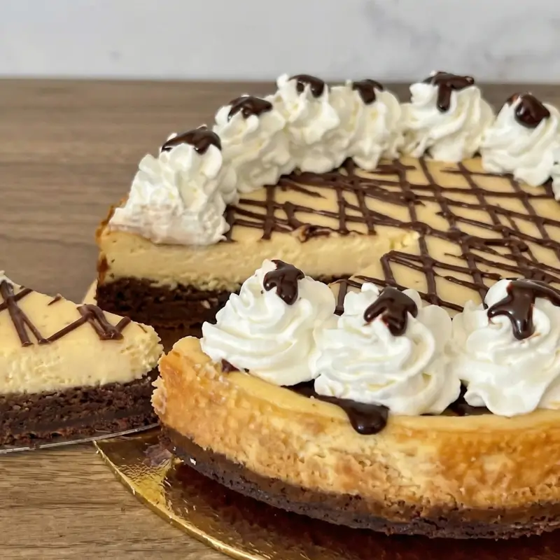 Clase práctica enfocada en la elaboración de un pastel combinado de brownie y cheesecake, cuidando contrastes de textura, cocción correcta y balance entre dulzor y cremosidad.
