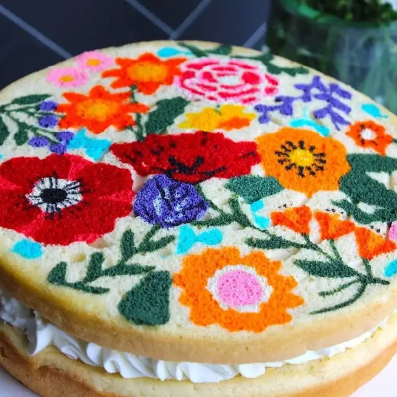 Curso práctico enfocado en la elaboración de tres leches con técnica de impresión comestible temática floral.